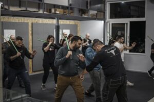 Το combatives αφορά τον χώρο εκπαίδευσης του Bear Arms, όπου μπορεί κάποιος να εκπαιδευτεί στον σωστό έλεγχο και ασφαλή χειρισμό οποιουδήποτε πυροβόλου όπλου ή αεροβόλου. Σε ασκήσεις πρακτικής σκοποβολής, βελτίωση στόχευσης καθώς και στην τακτική ενστικτώδη σκοποβολή. Στην προσωπική συνοδεία και προστασία. Στη σωστή χρήση και αντιμετώπιση όπλων αιχμής και κρούσης, όπως επίσης και σε άοπλη εκπαίδευση μάχης.